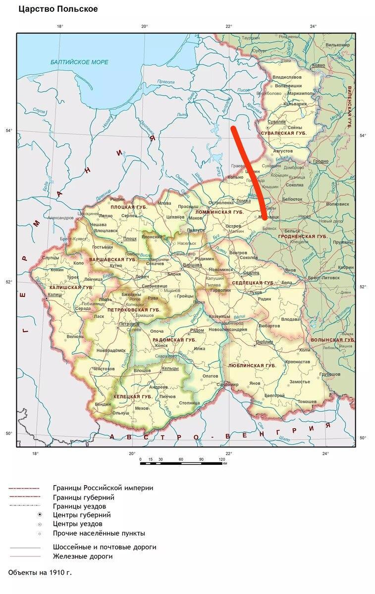 Поэтому, продавать Польшу следовало бы, так же как и Финляндию - без восточной части. Только сам выступ, чтобы по-максимуму спрямить границу. То есть, оставить Сувалкскую губернию в составе России.