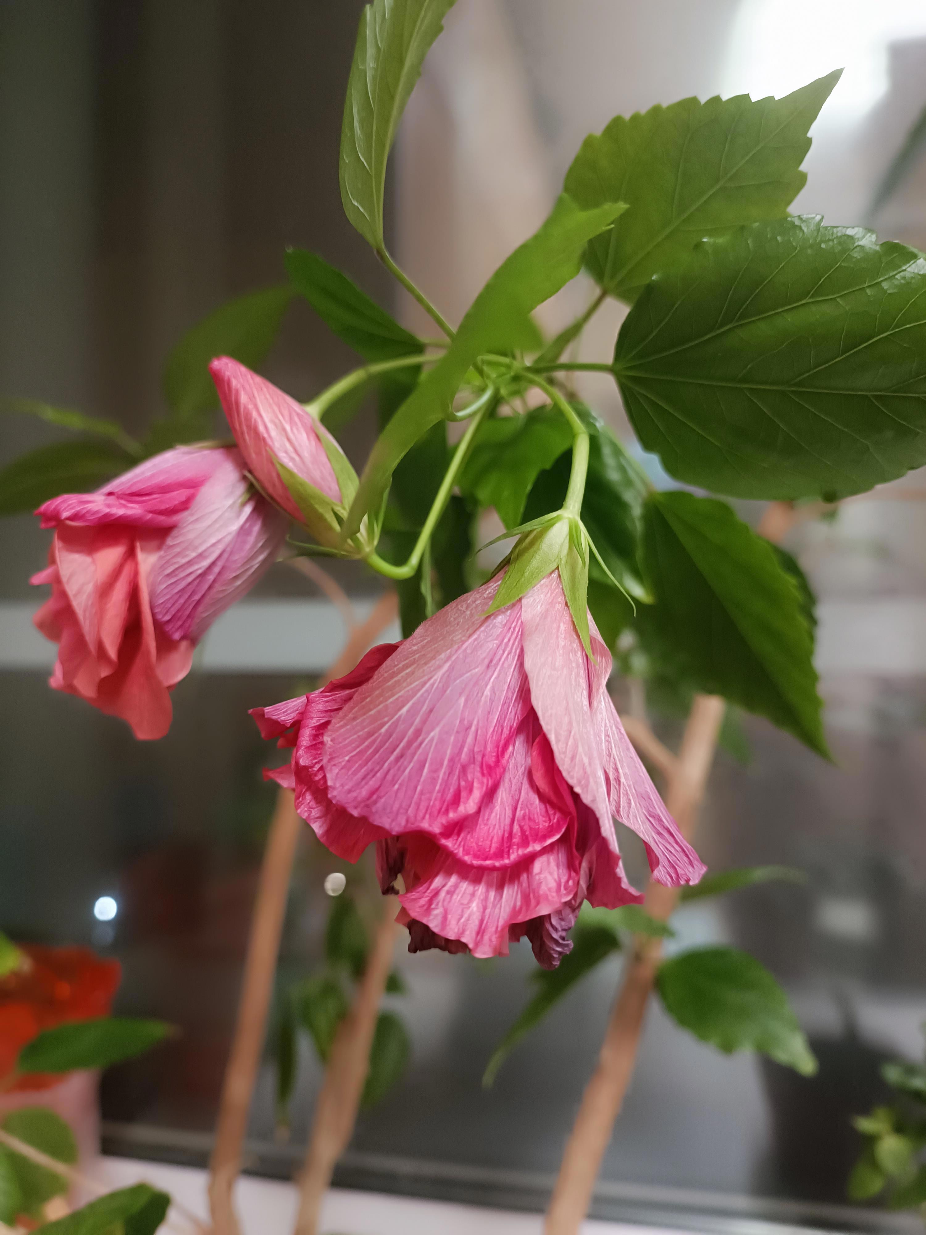 Цветочков вам принесла. Гибискус на работе зацвёл)