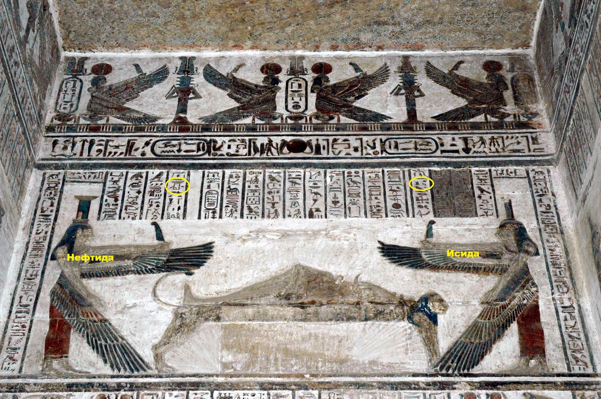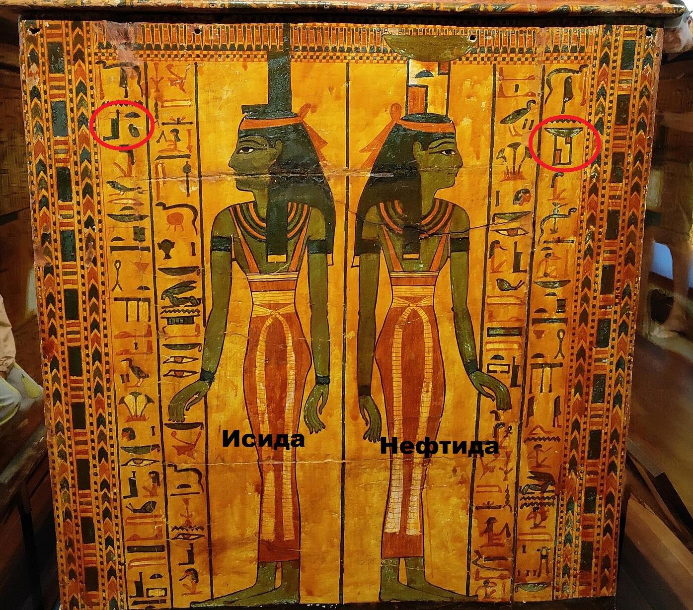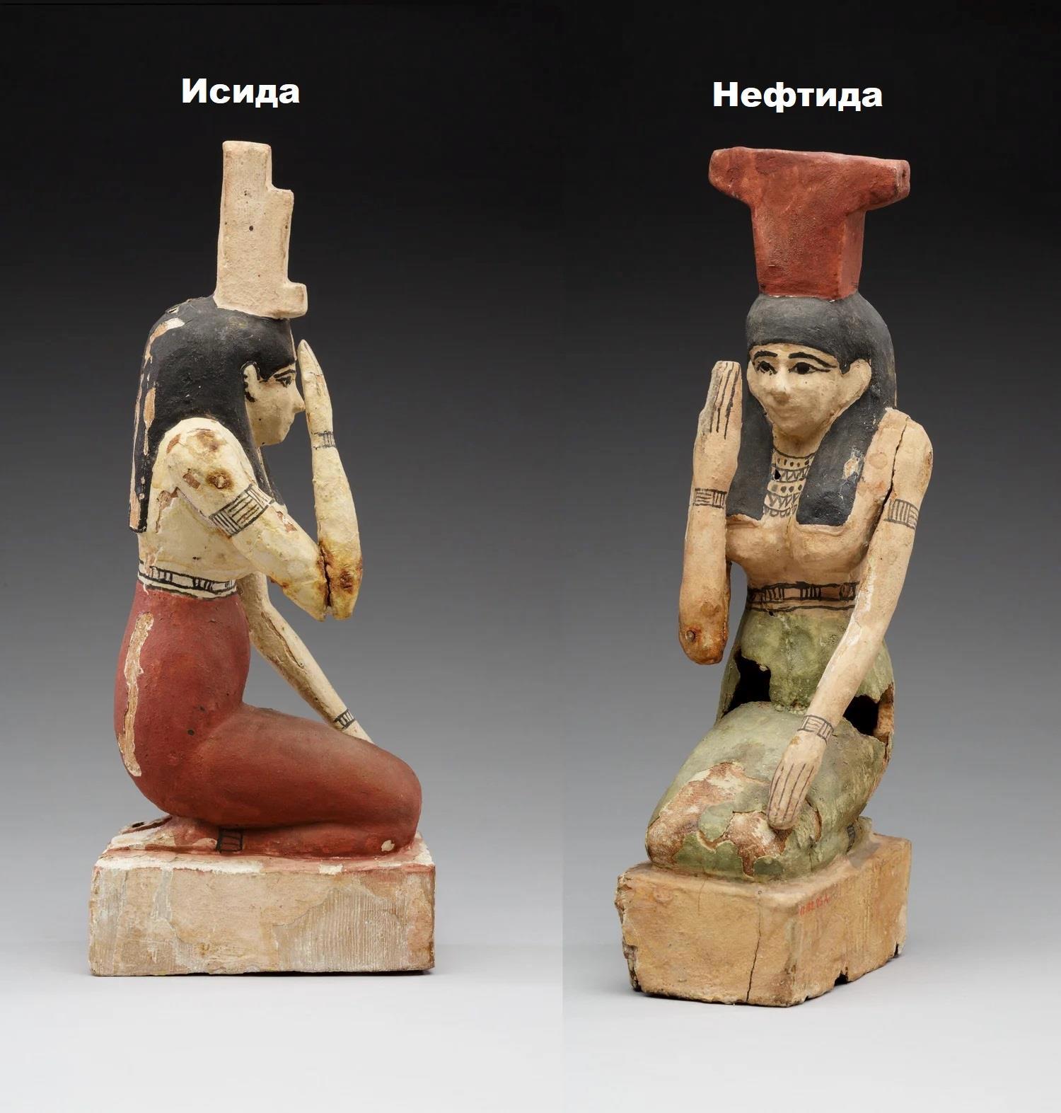 Ещё раз. Женщина с троном на голове – Исида, женщина с прямоугольником и полукругом на голове – Нефтида.