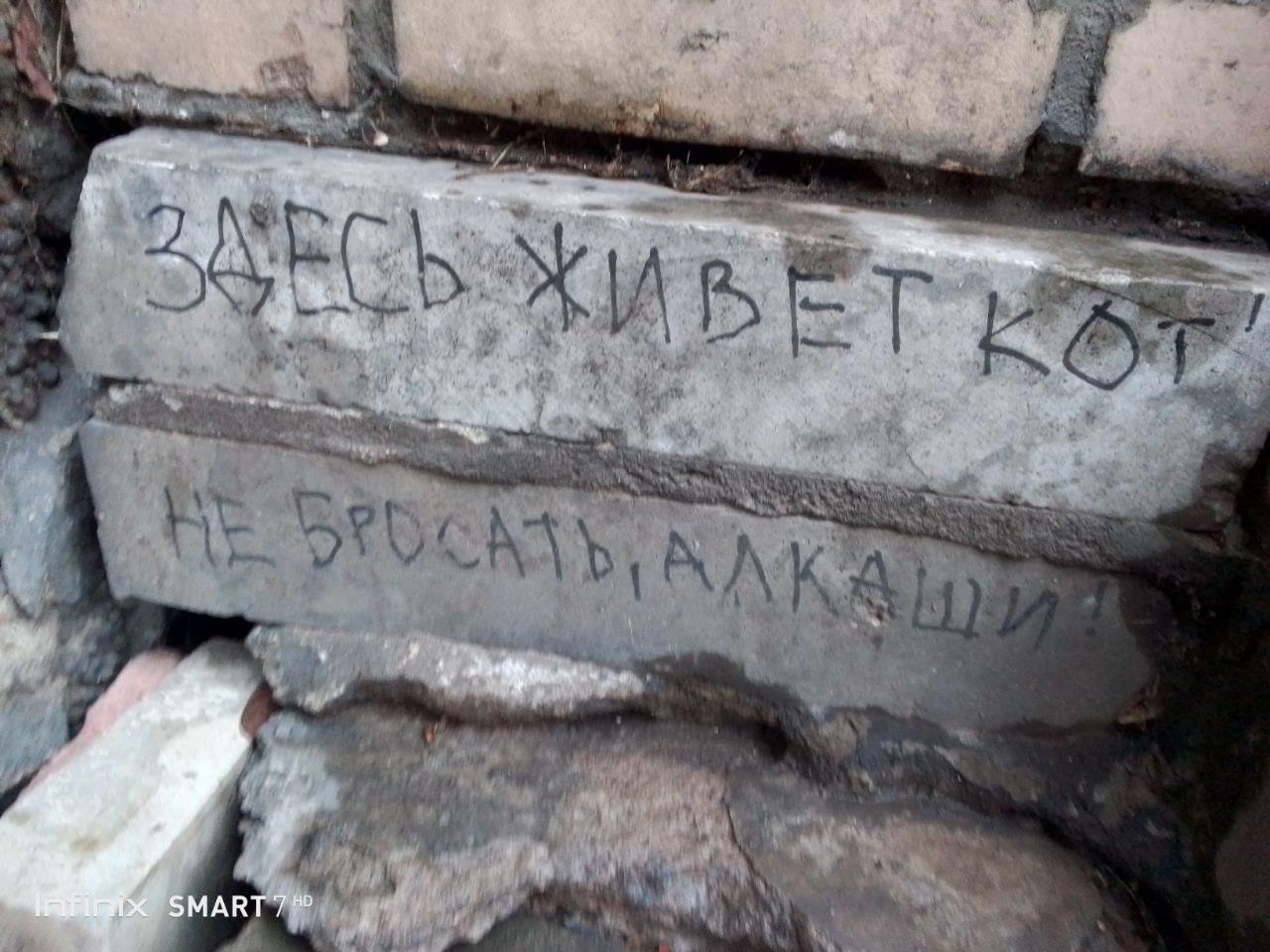 Вот такая трогательная надпись была обнаружена на «входе» в один из подвалов.