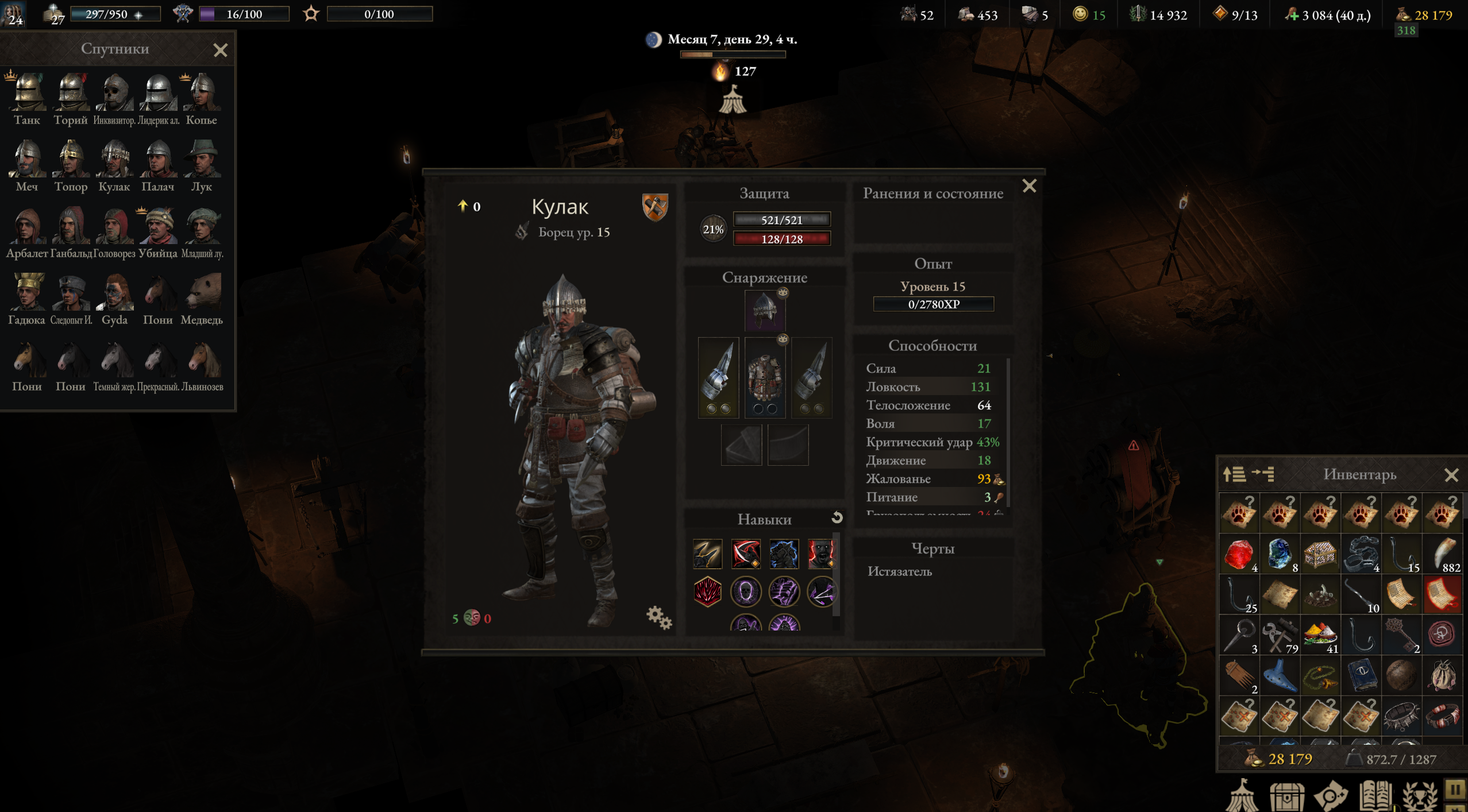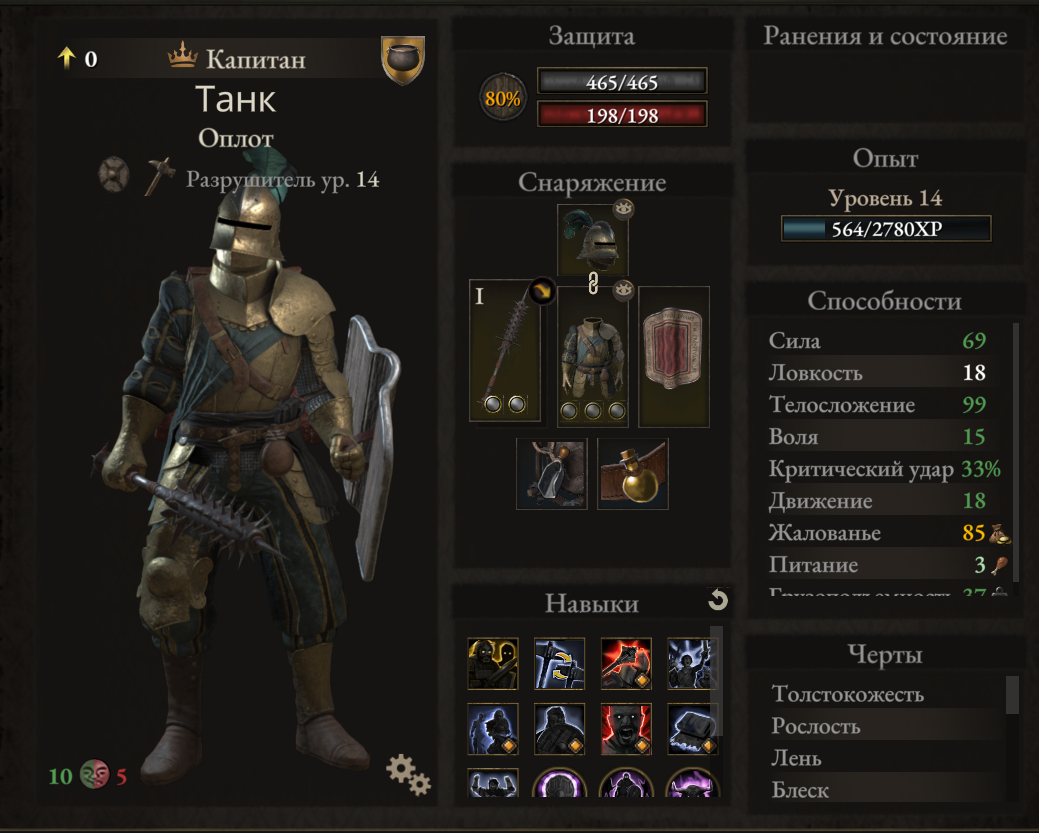 Суть состоит в том, что вы отряд наемников, ищущий приключений в мире, пережившем серьезную чуму. И так как приключения никогда не кончаются, то и игра условно бесконечная. Но условный конец — это прокачка всех 4 путей развития и прохождение сюжетных линии всех регионов.