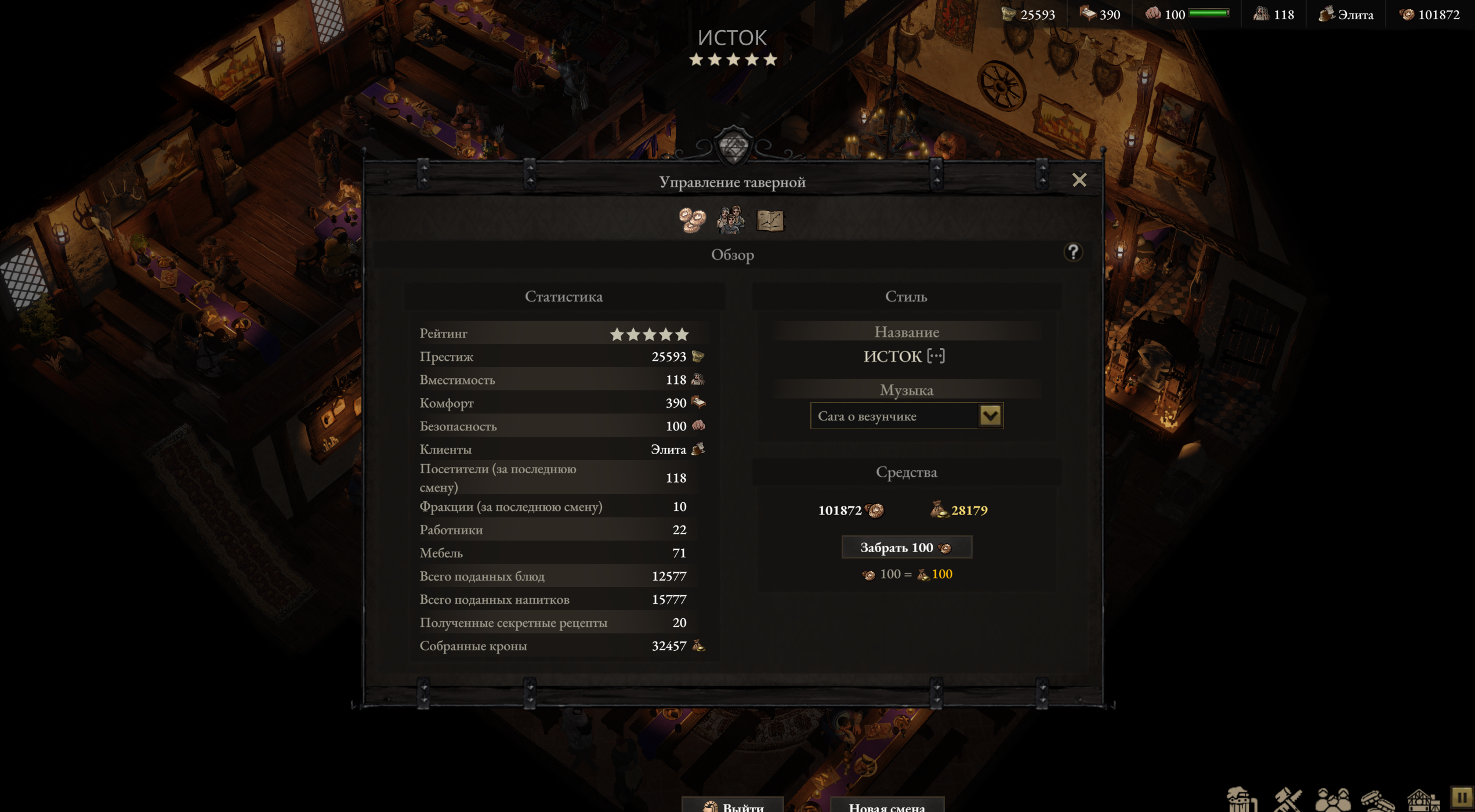 Например таверна дает тебе каждый привал блюдо на 14 еды, что очень сильно помогает на старте. И также дает возможность выводить оттуда деньги.