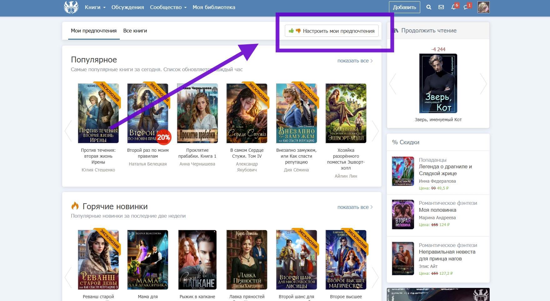 1) На главной странице author.today — кнопка "Настроить мои предпочтения".