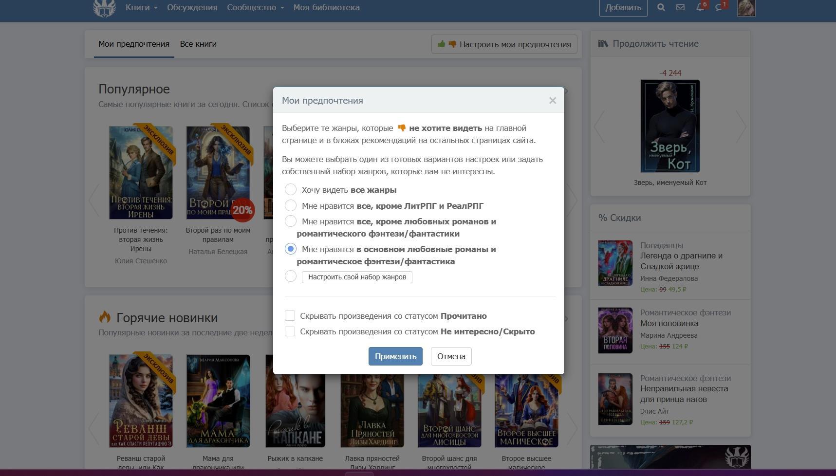 2) Здесь выбираем пункт "мне нравится любовная фантастика"