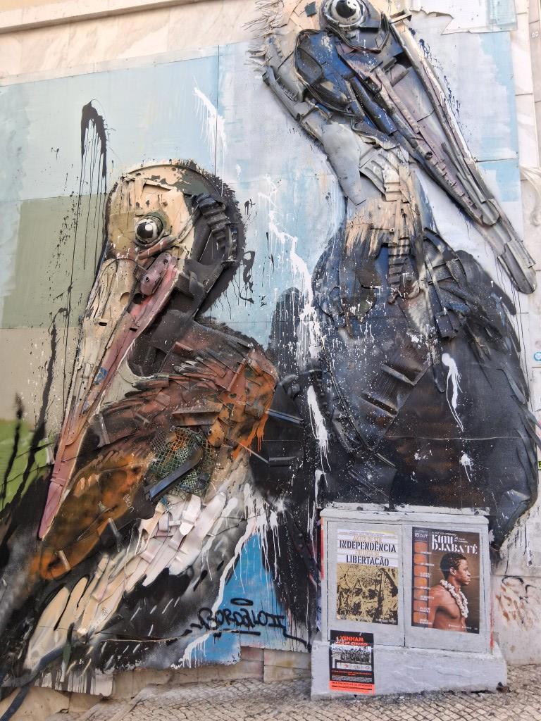 Большая 3D-скульптура пеликанов, созданная португальским художником Артуром Бордало, известным как Бордало II.
