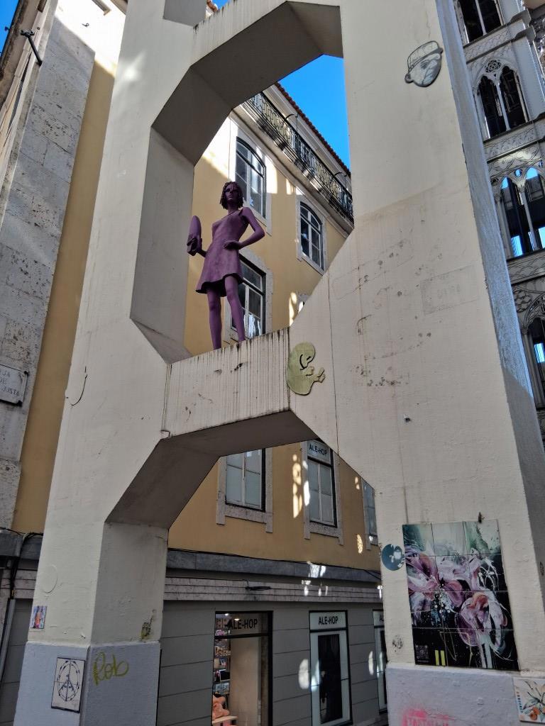 Розовая женщина, расположенная в районе Кайш-ду-Содре недалеко от знаменитой Розовой улицы с ярким розовым покрытием и зонтиками над ней.