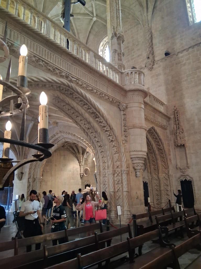 Бывший монастырь Order of Saint Jerome Он был воздвигнут в начале XVI века недалеко от отправной точки первого путешествия Васко да Гамы, а его строительство финансировалось за счёт налога с прибыли от ежегодной португальской Индийской армады - пряности в то время шли по цене золота. В 1880 году останки да Гамы и поэта Луиша де Камоэнса (восславившего первое путешествие да Гамы в своей эпической поэме 1572 года «Лузиада») были перенесены в новые резные гробницы в нефе монастырской церкви, всего в нескольких метрах от гробниц королей Мануэла I и Жуана III, которым служил да Гама. Гробницу Де Гамы мы увидим позже, когда доберёмся до "внутренностей" монастыря, а пока стоим в длинной очереди.