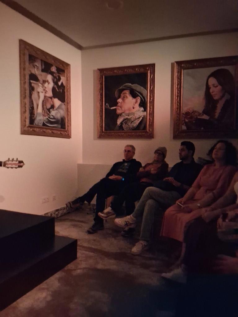 Стены увешаны портретами основоположников фадо и известных исполнителей, небольшой зал набит людьми; мы - в первом ряду - за что такой почёт?
