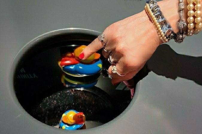 На самом деле утёнок на дне, а наверху лишь его изображение, которое и потрогать-то нельзя.