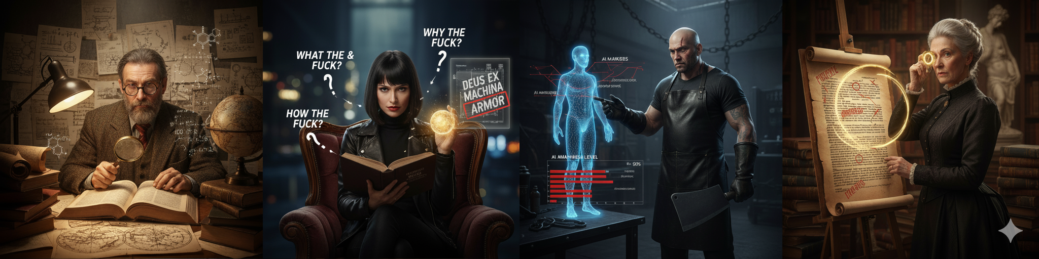 - Запрет на абстракцию: Если описан взлом/операция, есть ли конкретика? (Ошибка: "он просто взломал"). Требуй детализации инструментов/методов.