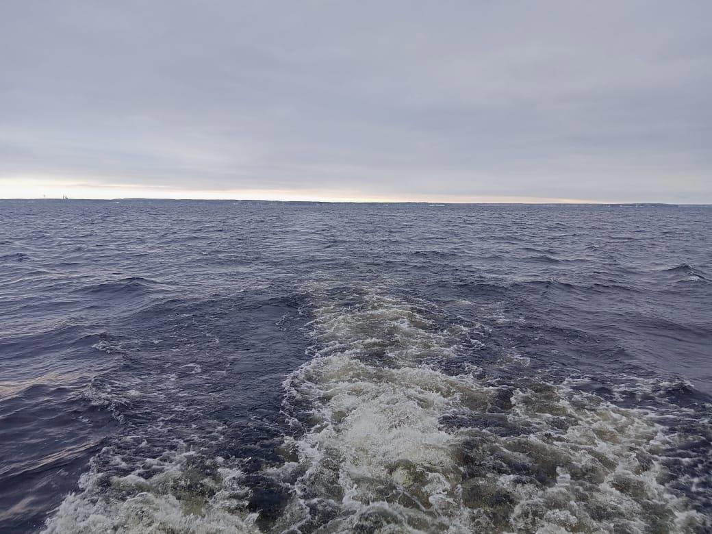 Дальше мы вышли в открытые воды, волна стала сильнее и задул ветер, но качка была почти еле ощутимая.