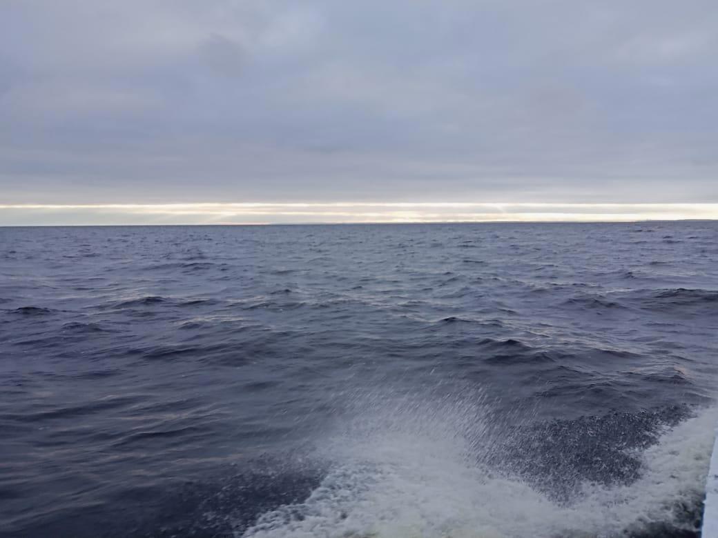 Это мы только вышли из залива. Волны нет, ветра нет, только холодно.