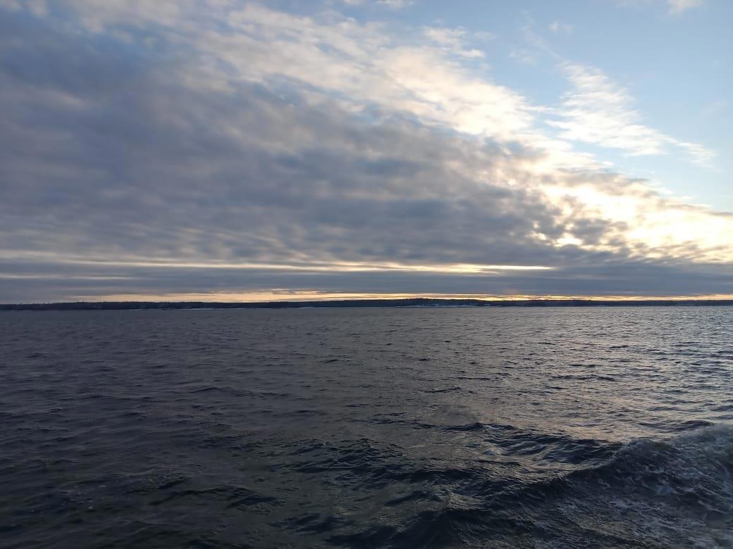 Автор: Владислав ПикуляЗдравствуйте друзья. Итак, как я и думал, наука нас даже в такие холодные дни не оставила в покое. Вчера к нам приехали очередные представители науки и начали испытывать какие-то свои новые приборы. Вчера мы были на подстраховке, мол если что произойдёт непредвиденное, нам надо будет выйти в открытые воды и их приборы буксировать к берегу, но вчера ничего такого не произошло, поэтому вчера мы никуда не ходили, а вот сегодня нас отправили в открытые воды работать. Науке понадобилось протестировать какое-то новое оборудование, к нам на борт зашли их представители, разместили какие-то антенны, компьютеры, тумбы, всё с экранами и светящимися кнопками. После мы отправились в открытые воды на нужную им точку. Они что-то там поделали и мы отправились обратно. Рейс выдался короткий, утром ушли, а вечером вернулись. Это и неудивительно, к нам пришла зима, похолодало и выпал снег, всё побелело, а над водой из-за ветра, стало вообще очень холодно. Но самое главное, спустя столько времени, почти полтора месяца, пока был в отпуске, я наконец увидел воду и почувствовал качку, хотя она и была очень слабой. И как всегда фотографии.