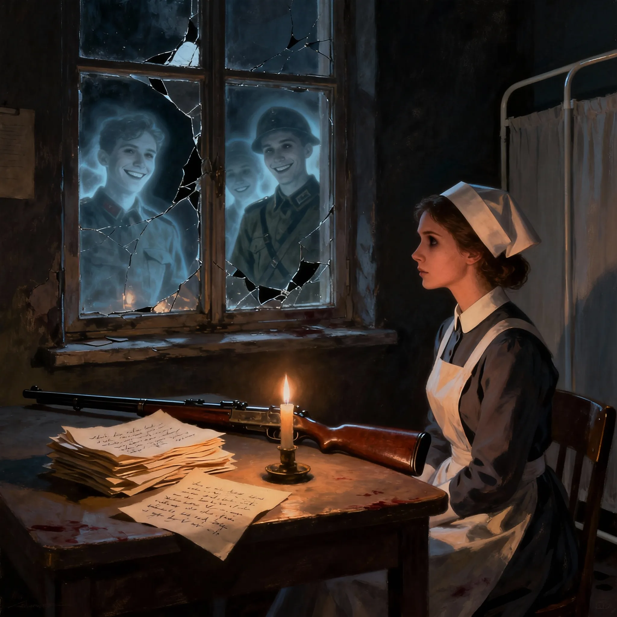 Автор: Алина«Сегодня я, как и весь этот месяц, не могу сомкнуть глаз. Перед глазами проносятся умирающие солдаты, крики, полные боли, и голоса, как Дима , спрашивающие , будет ли больно. Рука дрожит, пока я наливаю из графина воду, для того чтобы сделать два больших глотка, надеясь, что это сможет унять быстрый ритм сердца. Сажусь за стол, беру новый листок и ручку и так же, как и в другие бессонные ночи, делаю дневниковые записи. На столе стоит большая стопка из таких же записей. Я провела ни одну и ни десять бессонных ночей.»