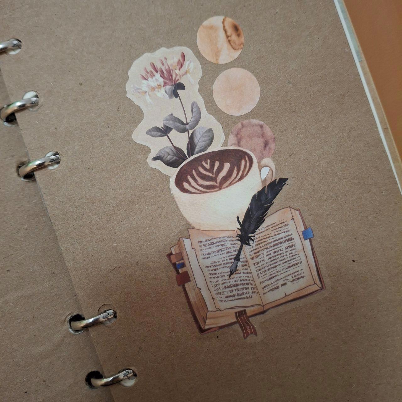 Ранее, всему этому я практически не уделяла времени. Были другие дела и заботы, как мне казалось, более важные. Теперь же я понимаю, что в моей картине мира и творческих заботах не хватало именно этого. Сделав такой вывод, я покопалась в предложениях он-лайн магазинов и нашла довольно интересный блокнот, имеющий отсылку к стилю фэнтези. Я его не только приобрела (кстати, совсем недорого), но уже начала вести. Решила начать с оформления (для чего прикупила ещё и набор атмосферных наклеек), и работа закипела, не менее творческая, чем создание художественных текстов.