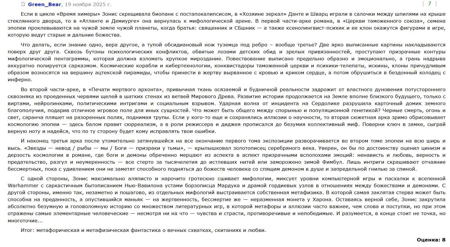 3. На Фантлабе друг Зеленый Медведь накатал огромный и мощный отзыв на оба тома дилогии "Атлант и Демиург" , кому влом ходить на ФЛ, но хочется почитать, вот скриншот сокращенного варианта )