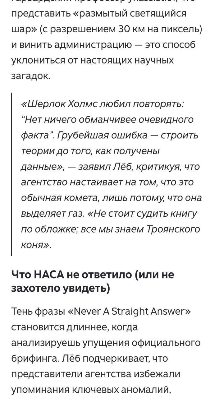 «Астрономическим сообществом, как таковым, она не считалась искусственно созданной. Она рассматривалась как межзвездная комета. Это уже вторая межзвездная комета, которая залетела в Солнечную систему. И вот это ее самая главная характеристика. А все остальное сильно надуманное. Притянутое, я бы сказал, за уши Абрахамом Лоубом», - считает ученый.