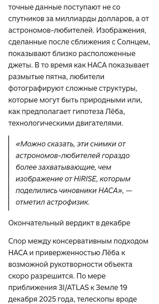 Перед релизом NASA старые кадры 3I ATLAS пересматривают заново — струи на фото всё больше похожи якобы на "работающие двигатели"? - https://dzen.ru/a/aR2g4CdxXFZrQ-zt?ysclid=mi68oq1q94620841725