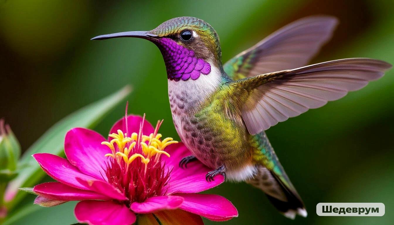 - Зависание: Благодаря этому механизму, колибри могут неподвижно зависать в воздухе, что очень важно для кормления нектаром, как это делают насекомые.