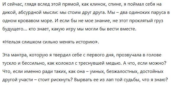 С одной стороны, я понимаю, что эта химия между этими двумя героями сейчас просто сильная, потому что у меня такое настроение. Оно может также быстро поменяться, как и погода за окном весной.