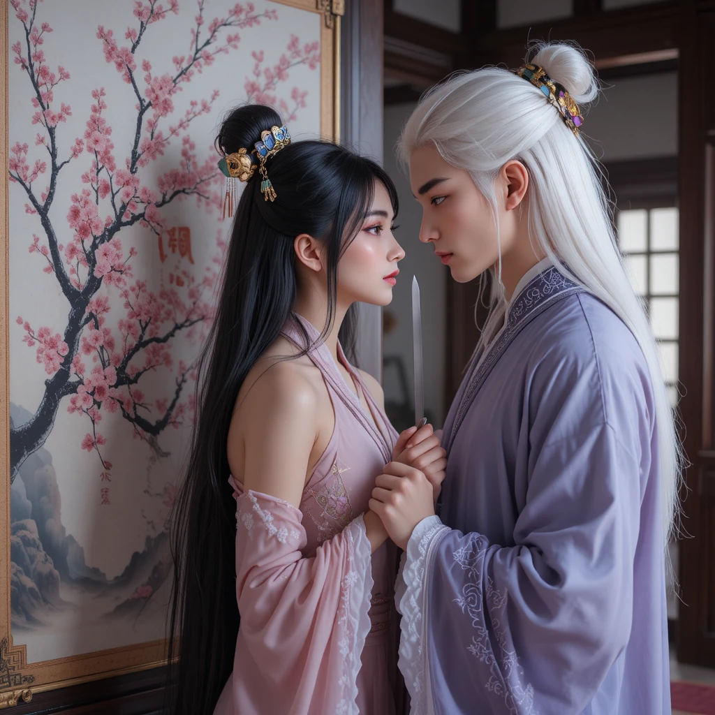 Лезвие остановилось в считанных хао от холста, когда, мгновенно переместившись, Мао Ичэнь быстрым движением перехватил запястье девушки.
