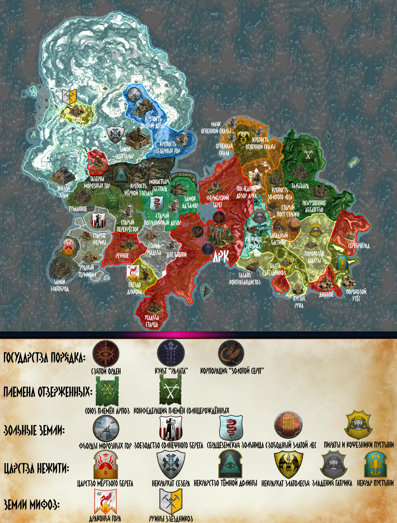 Карта с очень большим авторским взглядом. Почти все иконки фракций взяты из Warhammer total war 3.
