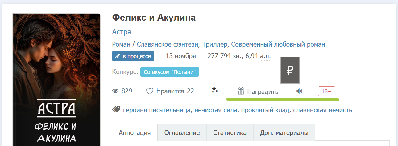Символическая награда от читателя создаст настоящую волну вдохновений для автора!