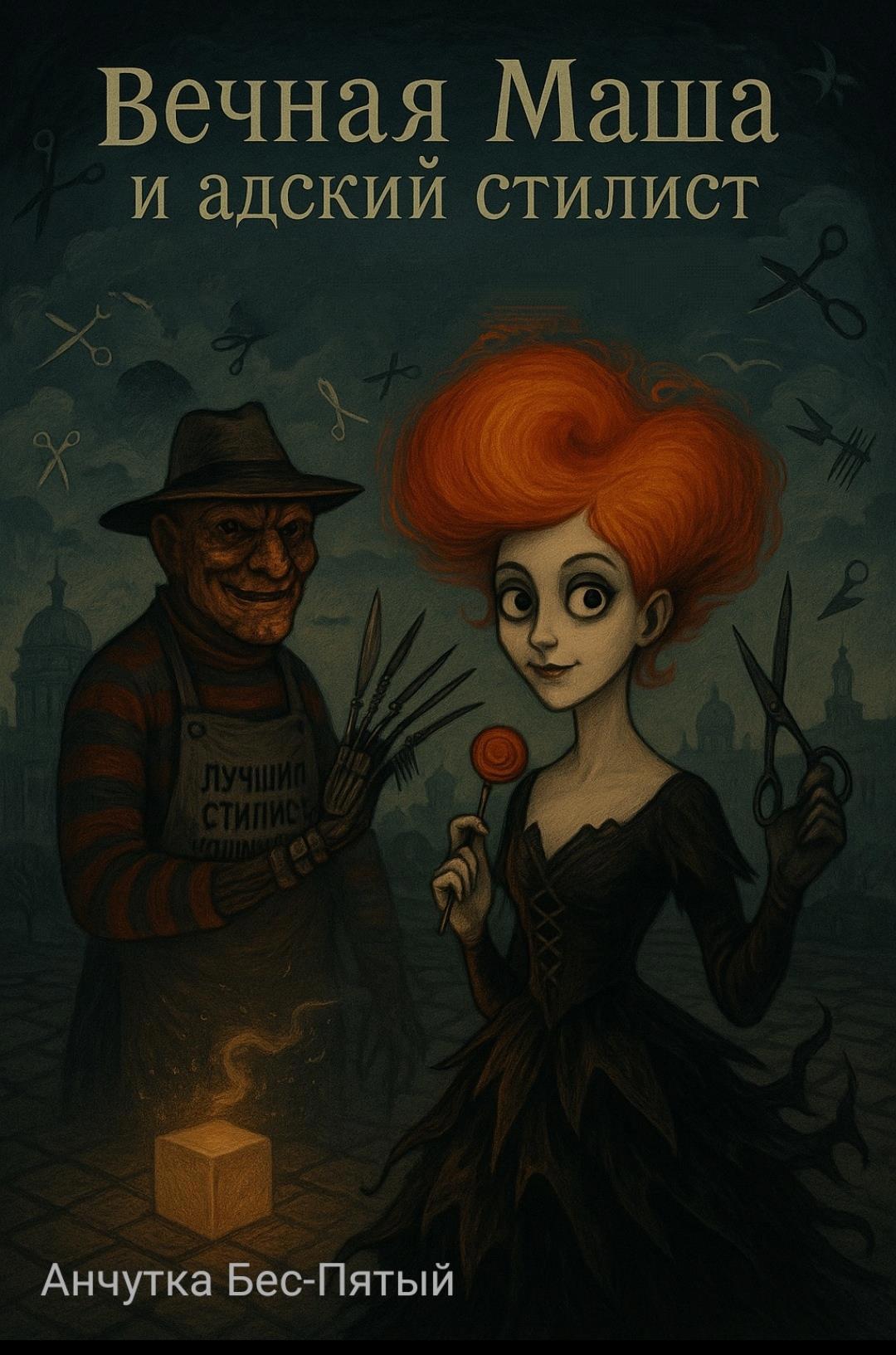 Автор: Анчутка Бес-ПятыйГоняю Гопоту, заставляю рисовать новые обложки для рассказов цикла про Вечную Машу. Получается не так весело, как в стимпанковском стиле шеда, но "ближе к тексту".