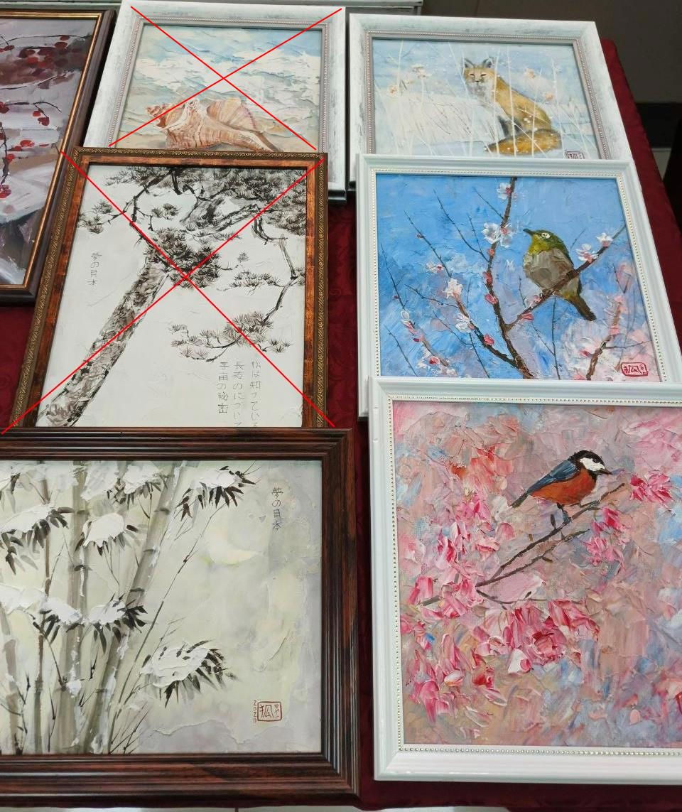 Вот картины выполненные акрилом, большая 60х40 см стоит 10 000 р, поменьше 40х30 см стоит 5000 р.
