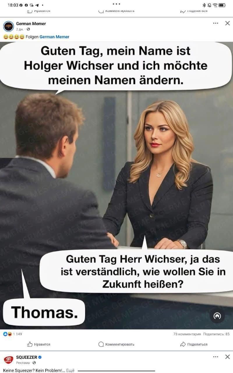 Ожидаешь, что он скажет новую фамилию, чтобы избавиться от «Wichser»,
