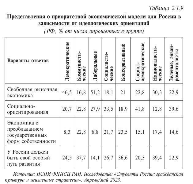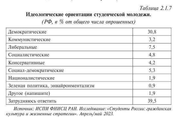 Идеологические предпочтения современного российского студенчества (т.е. наиболее развитой части молодёжи, которая составляет около половины от её числа).