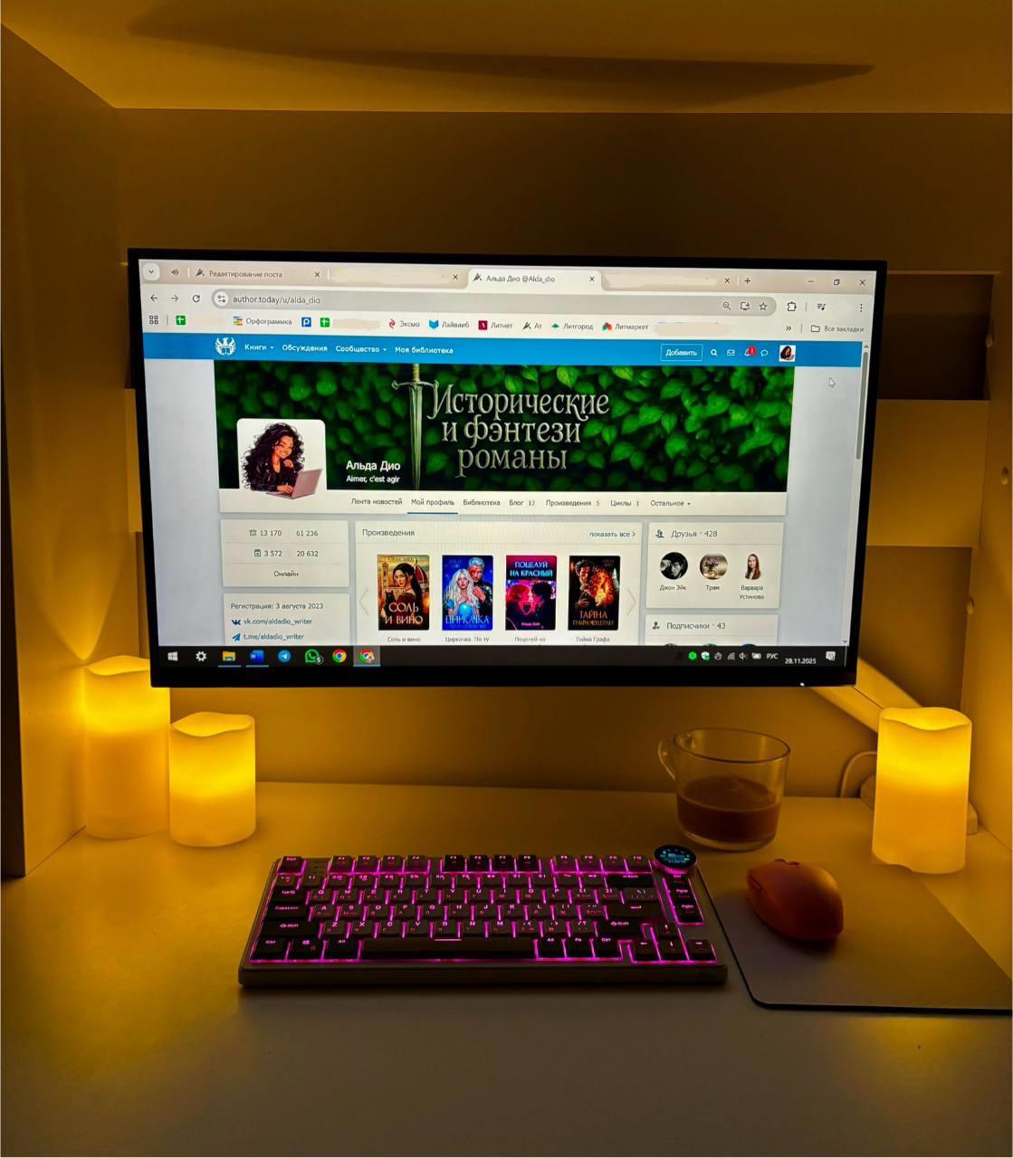 27. Фотовопрос. Покажите ваше писательское «рабочее место». Что в нём самое главное (определенный предмет, тишина, атмосфера, музыка, время суток…)?