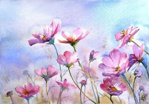 Иногда мне кажется, что и в литературе, особенно в поэзии есть манера "писать" словами, как плотными масляными пастозными мазками, так и воздушной прозрачной "акварелью". Вот два моих стихотворения, которые я пыталась написать акварельно...