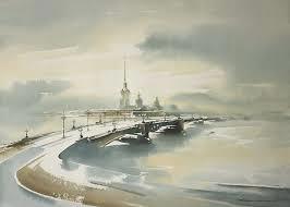 Достижению подобного эффекта способствует и использование бумаги в качестве основы картины, а также её предварительное увлажнение.