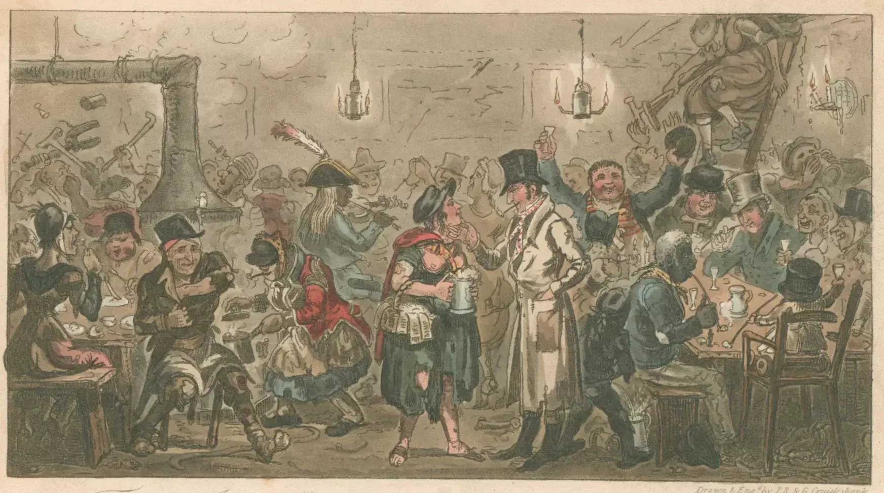 Вот и британский художник Роберт Крукшанк совершенно зря их изображал на своих картинах из жизни лондонского «дна» - всем же понятно, что в начале девятнахи в Лондоне никаких понаехов еще не было.