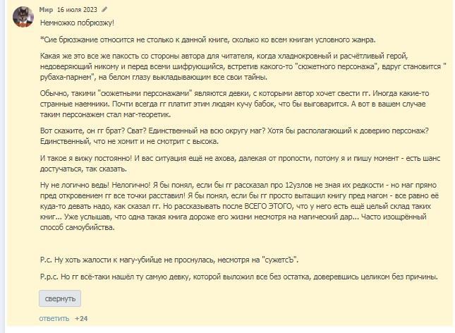 Не, вернулся - случайно наткнулся на комент двухлетней давности от меня к какой-то книге. Не совсем тему, но тоже по части мотиваций гг.