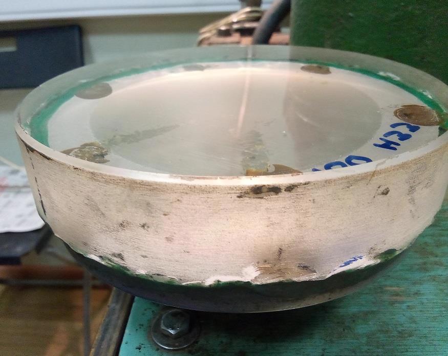 На данном этапе моя задача -- снять с зеркала мат. Очень часто (особенно у малоопытных стеклотеров) поверхность зеркала после шлифовки далека от сферы. Это может быть связано с двумя причинами: