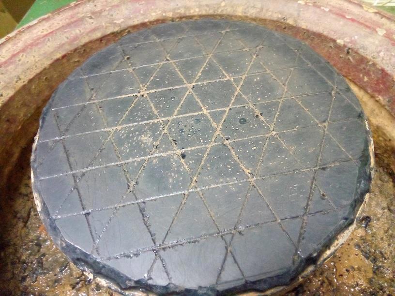 Намазал щедро, чего уж там. Это нормально для начала работы, когда полировальник еще чист и зерна полирита не внедрились в смолу. В дальнейшем будем подмазывать совсем по чуть-чуть.