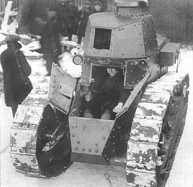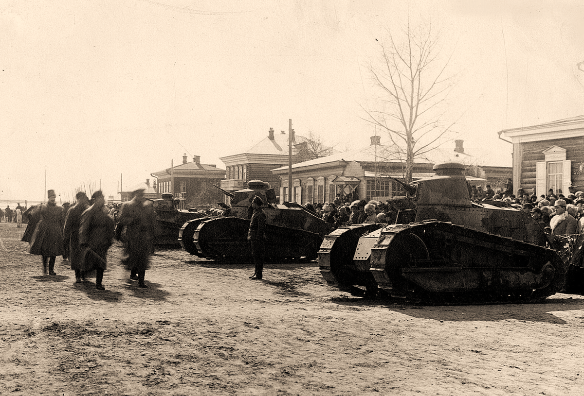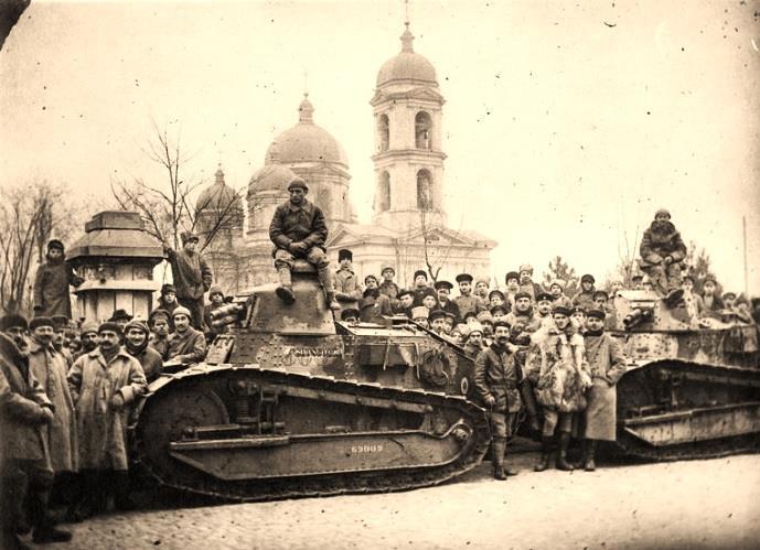 Автор: Игорь ХарламовНачалась эта история 12 декабря 1918 года. Когда в Одессу вместе с французской и греческой пехотой привезли 20 танков «Рено» FT-17 из состава 3-й роты 303-го полка штурмовой артиллерии. И эти танки оказались первыми танками оказавшимися в России. Хотя Российская империя ещё до прихода к власти большевиков пыталась закупать танки во Франции. Сначала заказали 390 танков (штурмовых орудий) «Шнейдер CA1», но затем от них отказались, заказав такое же количество хорошо проявивших себя легких танков «Рено» FT-17. При этом Русское правительство в отличие от Правительства США не приобретало и не собиралось приобретать у французов лицензию на их производство. Но в октябре 1917 года в России произошла вторая за этот год революция. А в марте следующего года Советское правительство вышло из Первой Мировой войны. И заказанные Россией танки в неё не попали. И танки именно из 3-й роты 303-го полка штурмовой артиллерии и достались первыми советскому государству.