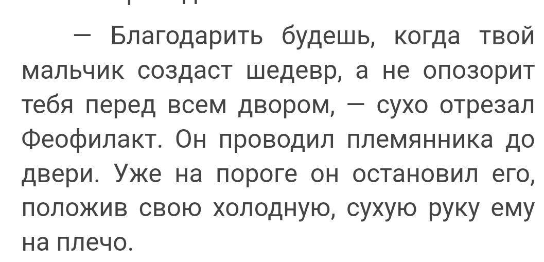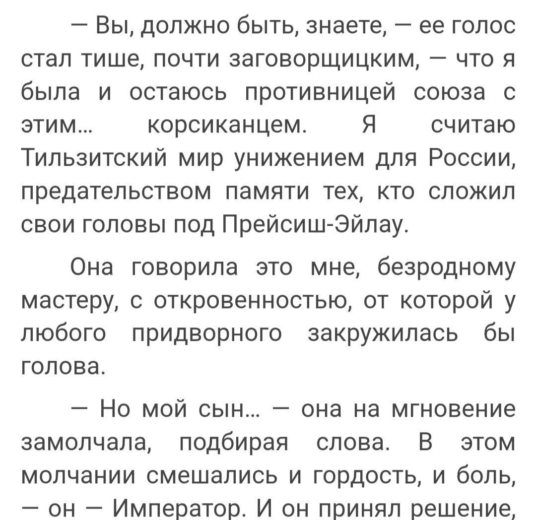 Более того, вот диалог государыни, с семнадцатилетним безродным парнем.Он потрясающе невозможен на мой взгляд. Царица видит перед собой впервые в жизни мальчика ювелира и тут такая: