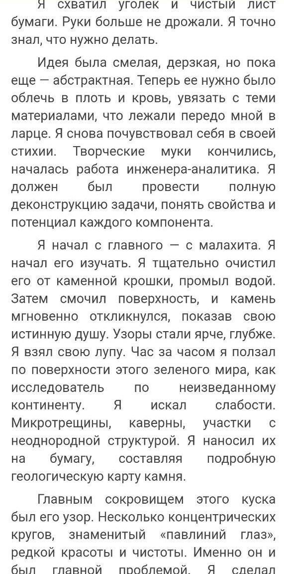 Книга Ювелиръ. 1807 не подвела с этим. В романе, как сейчас принято выражаться, «вкусно» описаны, ювелирные процессы. Произведение родило во мне, как в читателе желание творить. Сделать что-либо своими руками. И за это я автору благодарна.