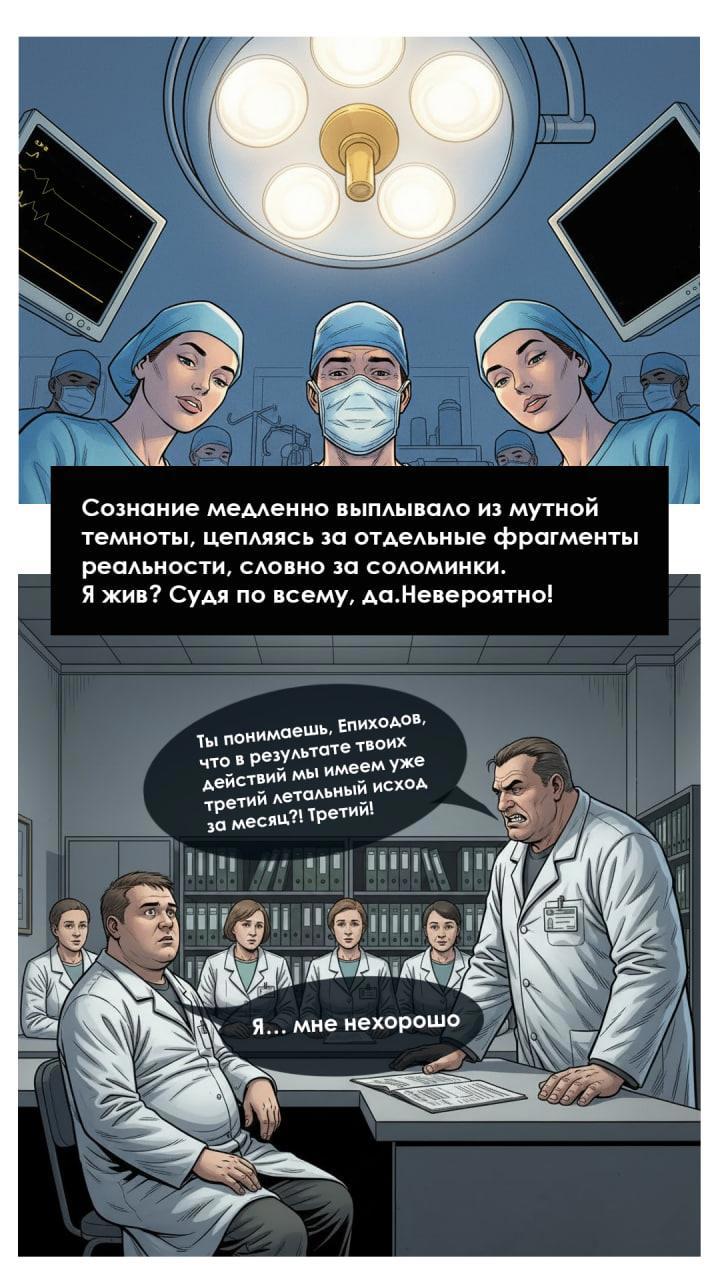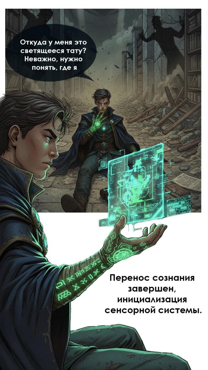 Комментарий Глеб Бочкарёв Очень интригует, буду с нетерпеньем ждать продолжения)) Пока ничерта не понятно, но интересно как герой будет со всем разбираться)))