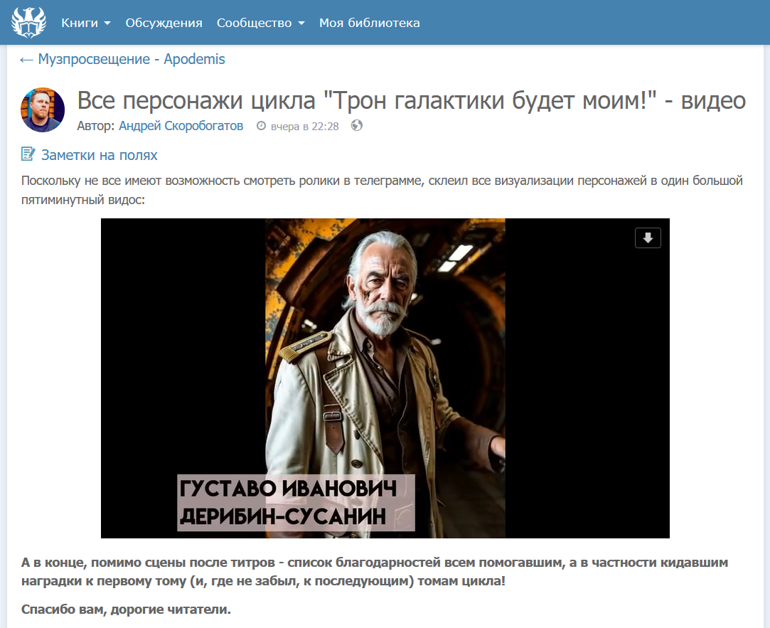 Получил визуальную благодарность от одного из местных авторов: