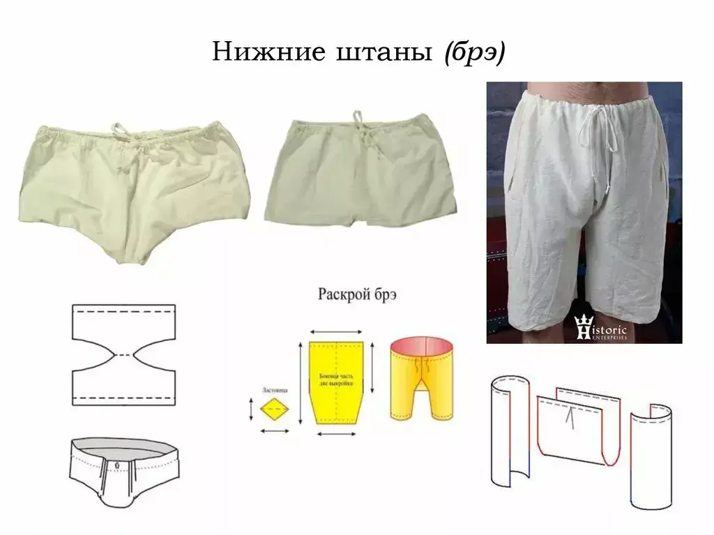 Примитивные штаны из тонкого полотна длиной до лодыжек, которые крепились к поясу. Штанины могли быть прямыми, с напуском или присборенными.