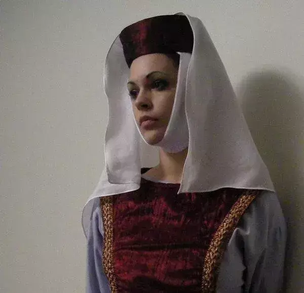 Женщины носили чепцы, платки, барбетты (платки из белого полотна, плотно окутывающие лицо, подбородок, шею и грудь)