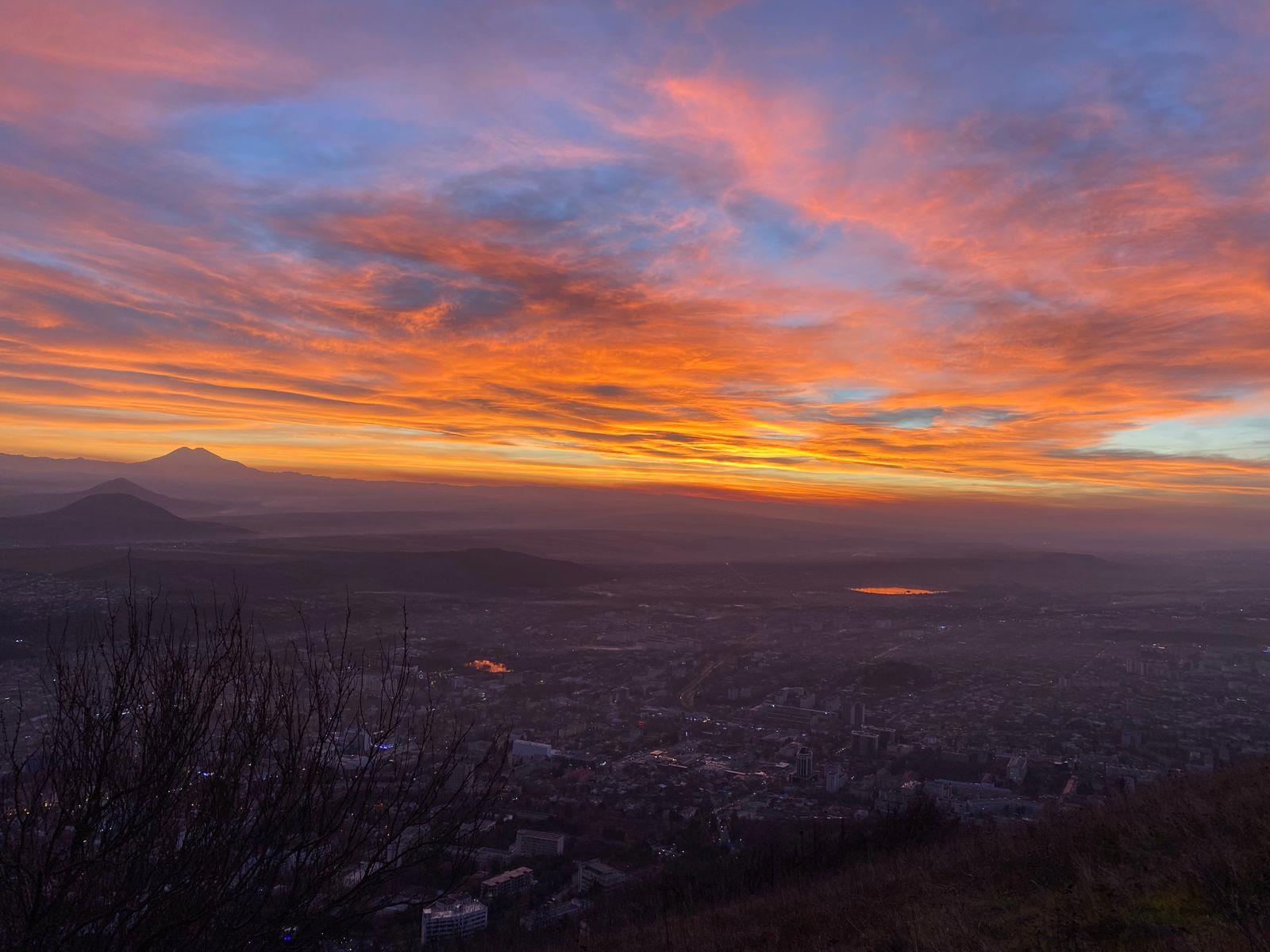 Автор: Лина АматоУ меня особое отношение к сумеркам, тому самому времени, когда уходящий день взрывается напоследок фейерверком красок. У нас выдалась чудесная погода на выходных и мы с семьей решили встретить закат на вершине Машука. Не показать эту красоту выше моих сил!