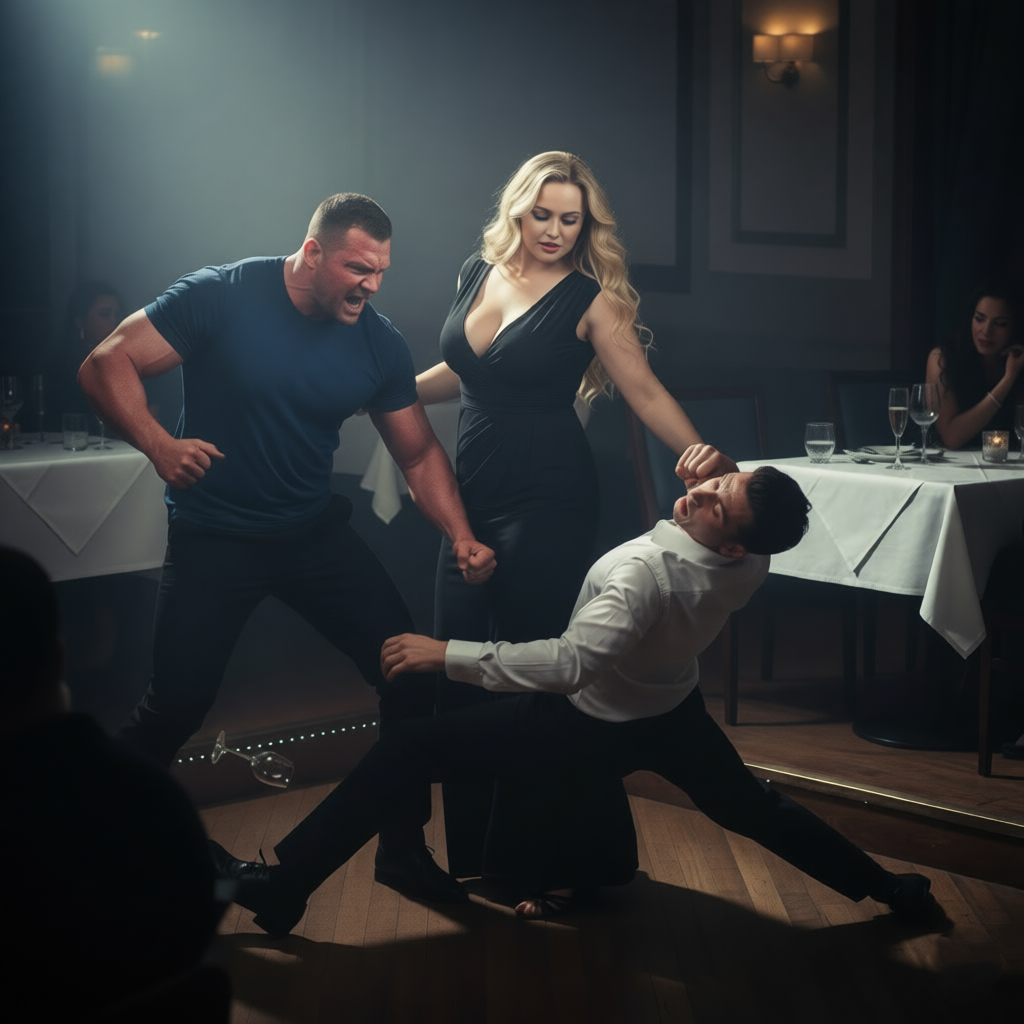 Сначала его лицо исказила маска полного, оглушающего шока. Он замер, не в силах поверить, что его, такого мужественного, такого значительного, могут так нагло и публично выставить посмешищем. Шок сменился обжигающей, унизительной обидой, а затем — слепой, всесокрушающей яростью. Его мозг, перегруженный алкоголем, тестостероном и ущемлённой гордыней, отключился. Треснул по швам. В ушах зазвенела тишина, в глазах поплыл кровавый туман. Он перестал думать. Он перестал быть человеком. Он стал просто кувалдой, которой требовалось что-то разбить.