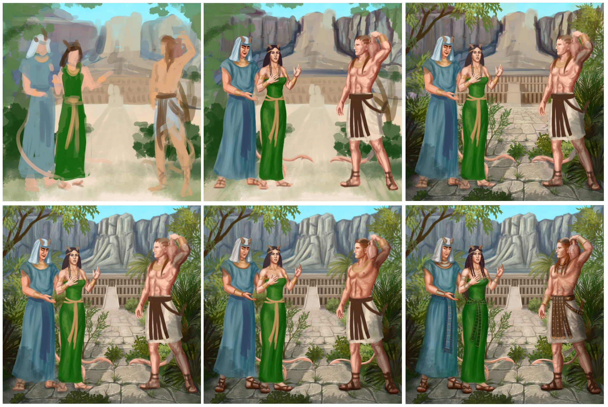 Автор: Анна ГейрНаверное, есть такие художники, которые рисуют всё по единой схеме. У меня так не выходит. В зависимости от самой работы, не знаю, хорошо это или нет, возникает разный подход к рисовке. Где-то основной служит трёхмерная модель. Где-то рисуется от набора пятен. Где-то вообще клеится грубый коллаж из референсов, и уже он служит основным референсом для самого рисунка. Иногда всё настолько хаотично, что впроцессник как таковой зафиксировать не выходит. Но в этих двух случаях, вроде получилось.