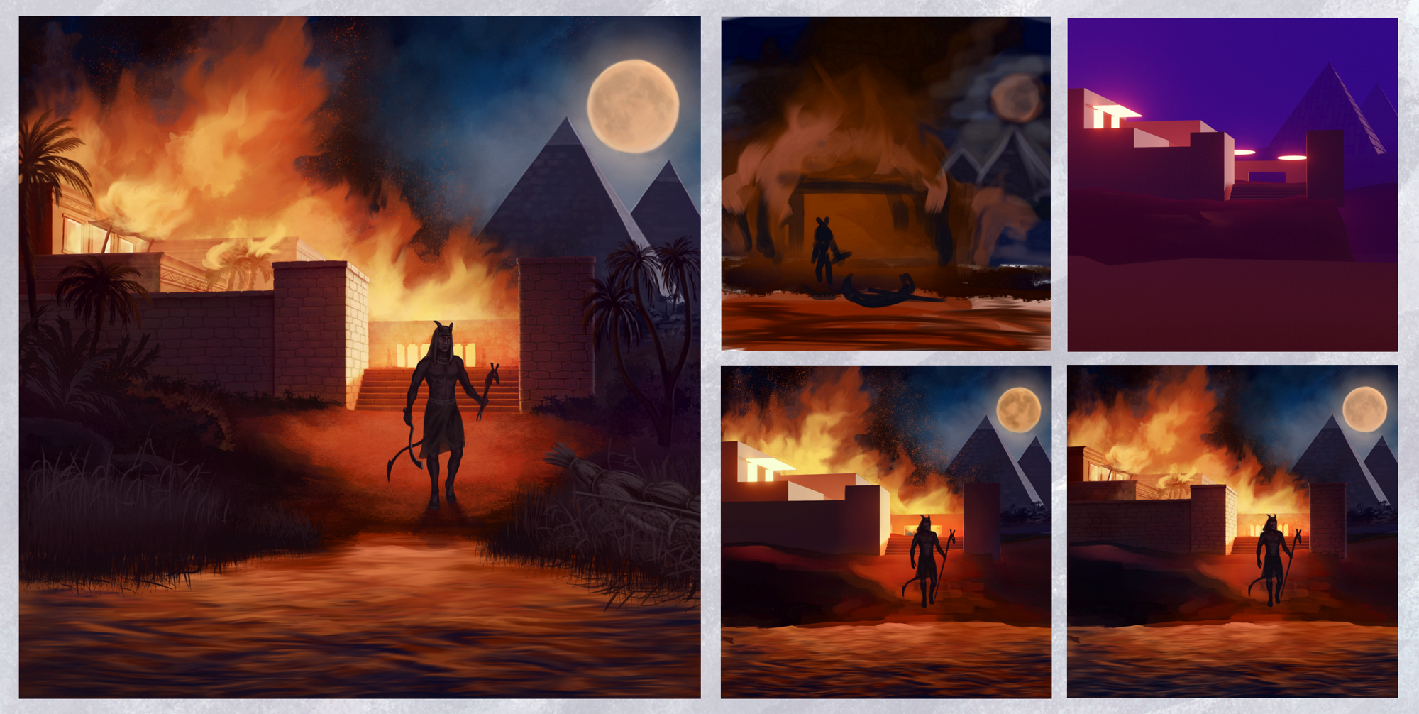 Это обложки к серии "Берег живых". Обе они с использованием 3D (я ленивая, и мне неохота лишний раз рисовать перспективу, когда компьютер сделает это лучше и быстрее). Но в первой рендер лёг в основу всего рисунка, а во второй я смоделировала только храм, чтобы все его многочисленные колонны появились одним волшебным нажатием кнопки "Array").