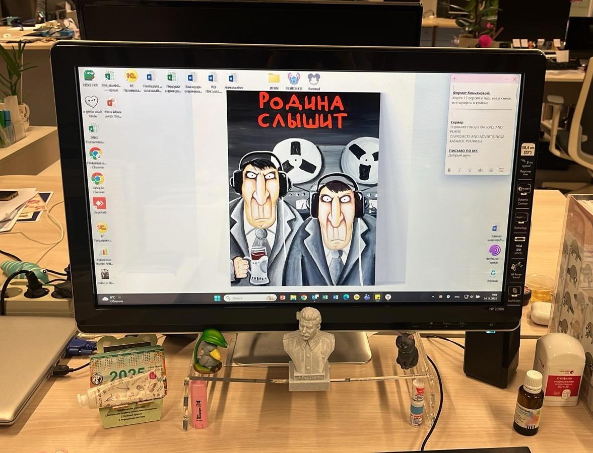 Автор: Стефан ФакеерДочь узнала, что её хотят сократить из компании, где она проработала 8 лет. На следующий день её рабочий стол украсил бюст Сталина, и её коллеги невольно могли слышать обрывки фраз с её рабочего места: